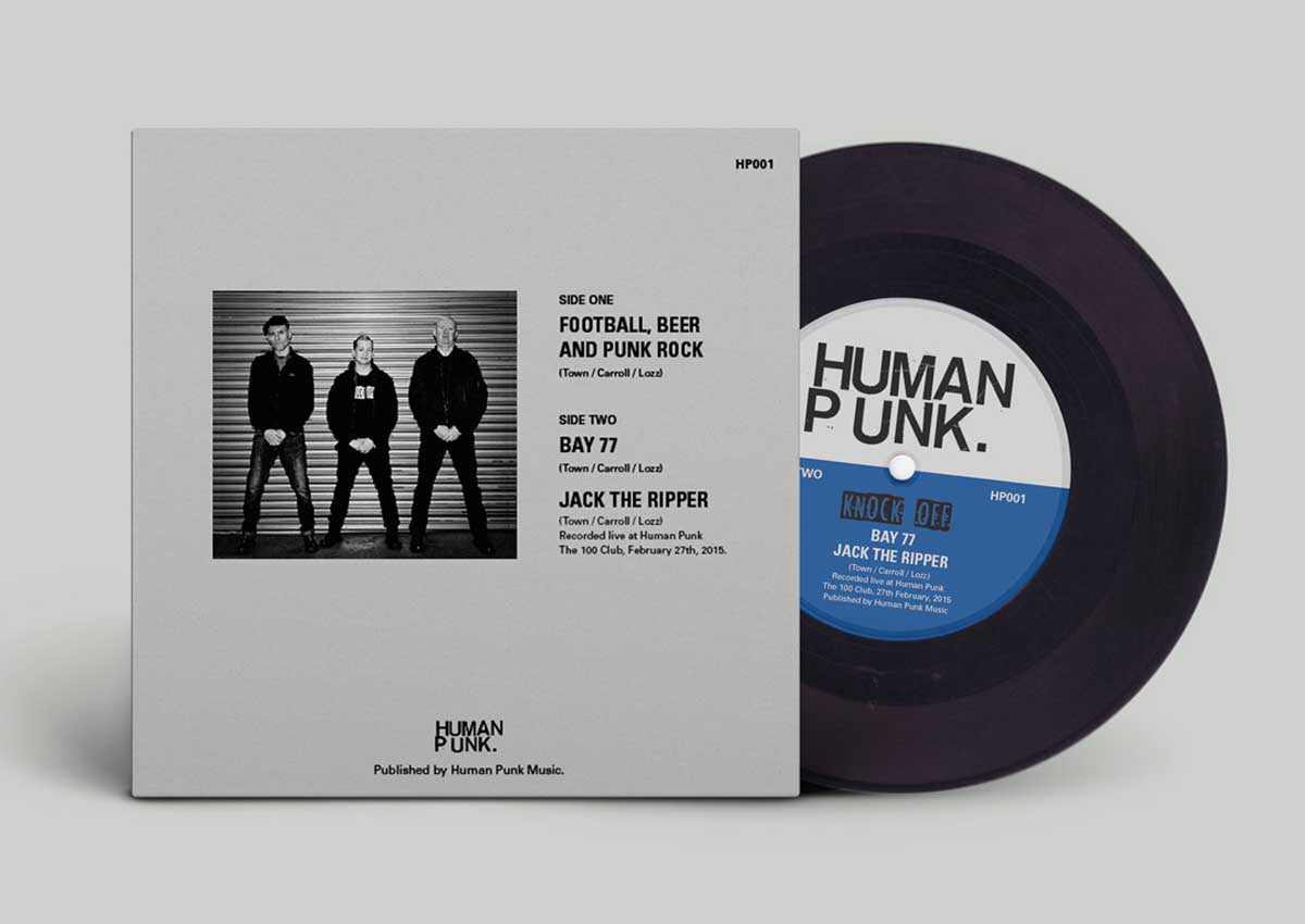 The first release from Punk revival label Human Punk. This 7" vinyl single from Knock Off marks the first of several projects we've worked on with Human Punk.